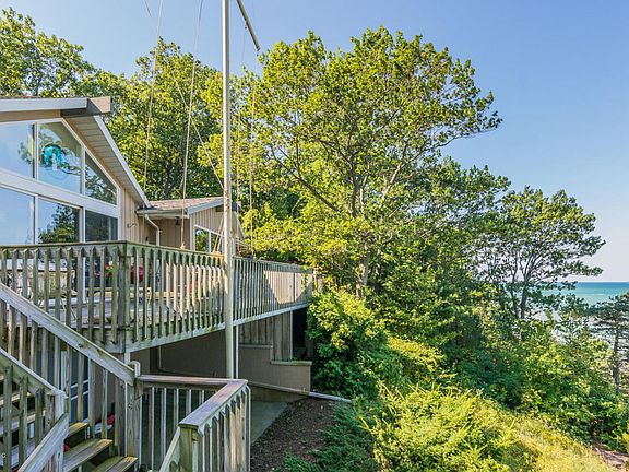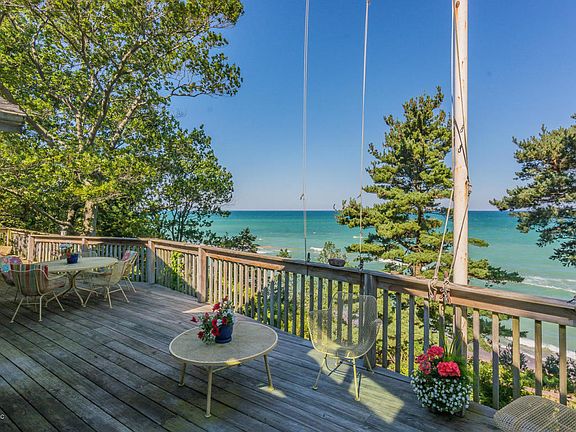 HARBERT-LAKEFRONT Spectacular views of Lake Michigan combine with the sensation of being close to the water. What is unique about this property is that you actually feel like you are living on the beach! Not all lakefront properties are created equal and this is one of the best. The house is California Modern and it is designed to appreciate the setting and views. Easy access to the beach via a terraced dune and a minimal amount of stairs. A deep sandy beach awaits, even on a wavy day. Set back from the road with a back dune forest between you and the world. Privacy. Spacious decks, sleeping porch and a wood-burning fireplace. More spectacular homes are a dime a dozen. More spectacular properties are few and far between. Treat yourself. Pick the timeless location. You've earned it...