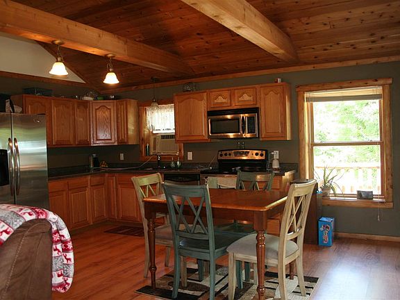 QUIET & PRIVATE with this 2BR/2BA one level log home. Open living/kitchen area with walk in pantry and 2 sets of slider doors leading to a wrap around covered deck. Master bed/bath with walk in closet, double sinks & jet tub. Heated garage, large yard with open lawn area and woods, fencing with sheds & chicken coup. All this on 2.24 acres just W of Munising.