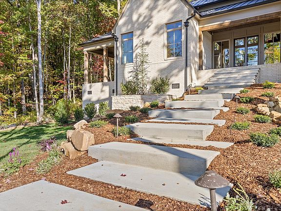 Welcome to your modern mountain dream home crafted by Deep South Custom Homes in the prestigious gated community of Flipper Bend on Signal Mountain, TN. Nestled on a corner lot right across from the brow views of Chattanooga's verdant valley, this 4-bedroom, 3.5-bathroom luxury home offers unparalleled craftsmanship and contemporary elegance. Step up the grand front path and onto the inviting stone front porch and step through the glassed entry into a roomy foyer with a floating staircase allowing amazing views out the windows on each side of this glass box masterpiece. To the left, discover the heart of the home - a spacious kitchen and living area flanking the central dining space. Accentuating the living space are the vaulted ceilings with exposed antique rafters and other antique beam accents lending old world charm as well as a stone fireplace extending to the center of the vault adding texture and warmth. The living room showcases the cozy gas fireplace flanked by windows for magnificent views and convenient access to the screened, side porch with more mountain views, a fireplace with TV hookups above, and an attached, covered grilling porch with a built-in grill.The kitchen features site-built, custom cabinetry, quartz counters and back splashes, a 48'' gas range with a copper venthood, a large island with seating, a 60'' refrigerator/freezer, and a scullery. Returning through the foyer, to explore the other half of the house, don't miss the back patio in a quaint courtyard with space for a fire pit with a fire ring or a water feature to create a serene outdoor oasis. Through the foyer on the right of the home is the rear entry hall leading to a three car garage on the back of the home. The rear entry hall is well appointed with custom storage and a powder room. On the front right of the home you will find the luxurious master suite with views towards the brow.