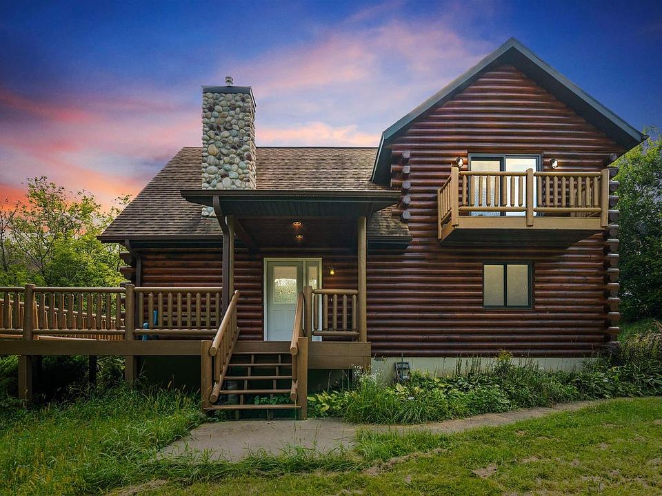 Welcome to 7985 Spore Road, Argyle?a stunning 2007 custom log cabin on 35 acres. This 1,302 sq. ft. home features three large bedrooms, two full baths, hardwood floors, and a cozy stone fireplace. Two bedrooms offer walk-out balconies with countryside views. Large picture windows bring the outdoors in, while the unfinished walkout basement adds potential. The property includes mature timber, apple trees, and Whiteside Creek. About 18 acres are tillable and currently rented, or could be converted to pasture for horses or cattle. All furnishings included. A true private paradise!