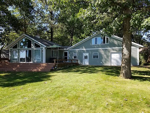 Open house 5/22, 1 to 4 central. Beautiful lakefront home with 80 ft of sandy shore. Home was fully remodeled in 2008 with open floor plan, hardwood floors and hickory kitchen cabinets and a gas and wood burning fireplace. Brand new Furnace and AC, stainless steel appliance and newer hot water heater and water softener. The lot is wooded with plenty of room for company and parties. The lakeside part of the home has a wrap around deck, perfect for entertainment. This is a move in ready home. The garage was design to add a bedroom and bath above it. Furniture and 2001 Hurricane Deck (low hours and great condition) boat and shore station are negotiable