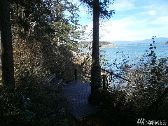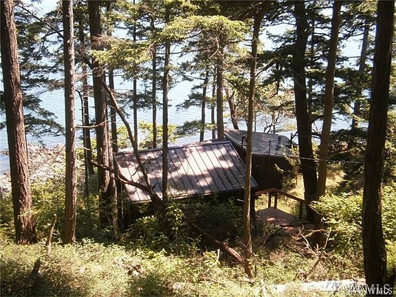 Secluded 90' Pristine Waterfront, 1/3 acre. Staircase Zig-Zags down to Small 2 Room Cabin with WC, Decks & Fire Pit sit 15' above Beach on Private Point. Water on 3 sides at High Tide. Separate Art Studio with Outdoor Shower. All enjoy Spectacular views of Padilla Bay and Mt Baker. Eagles nest above, wildlife feed along shoreline and in waters below. Two Beaches nearby, boat launch and possible moorage at one. Turn left at Saddlebag Lane, Park at top of stairs. You must watch video!!!