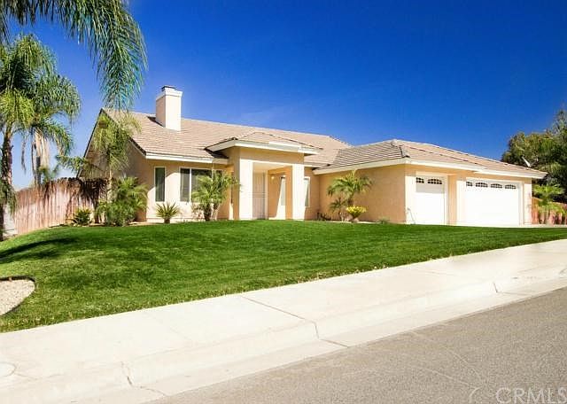 Contact me for a private viewing! Oscar Tortola 951-733-2040Visit my website www.CoronaHomes-ForSale.comand like me on Facebook www.Facebook.com/CoronaHousesForSaleGreat curb appeal on this one story home located on a corner lot! Bright and open floor plan with vaulted ceilings and many upgrades throughout. The elaborately designed kitchen will please the inner chef in you with brand new custom cabinetry and elegant granite counter tops with a beautifully designed back splash. The hanging lights over the kitchen island add a finishing touch of decor. The two sided fireplace can be enjoyed from the living or from the dining, room both sides have elegant decorative wood mantles. Tile floors, wood blinds and ceiling fans throughout. Enjoy the hills and light views from your back yard covered patio. The lot is split level, the lower level can be used for to house horses or to store your toys such as RV, trailers or boats. Turnkey ready will not disappoint!