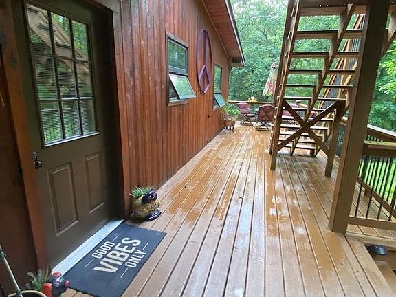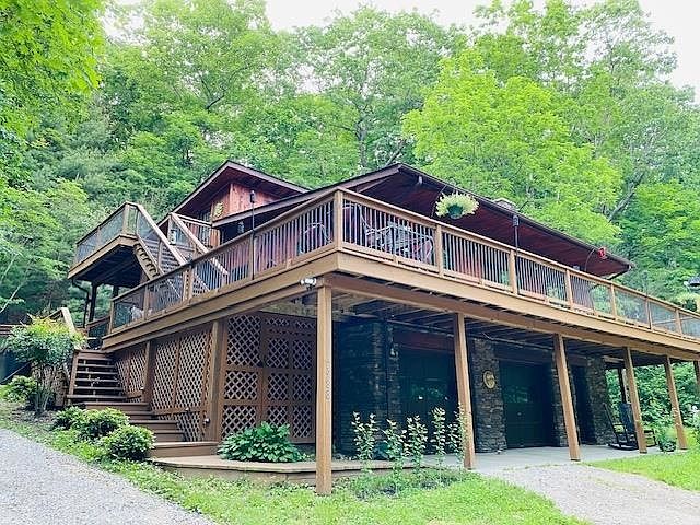 Welcome to 7988 Miller Cove, a serene cedar home in a private forest setting, just steps away from Trout Creek featuring a wrap-around deck and relaxing hot tub, perfect for soaking in nature’s beauty. Inside, you’ll find open concept living highlighted by a stone gas fireplace. The main floor includes 2 bedrooms and a full bath, while the upper level boasts an additional bedroom with a private balcony and bath. The basement presents endless possibilities with a workshop, built-in shelving, a plumbed bath, and laundry access. A spiral staircase connects all three levels. For peace of mind, a whole-house generator is in place, and fiber internet ensures you stay connected. Located just 1 mile from the AT, this home is a true outdoor enthusiast's dream. Seller is Licensed Real Estate Agent.