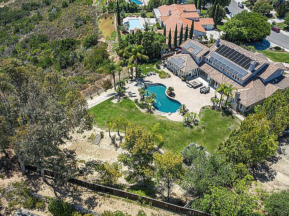 This stunning estate home is located on a sprawling .98 acre canyon rim view lot in The Ranch, and has been done to perfection! It offers 7 bedrooms, 2 bonus rooms, an office, 5 full bathrooms, and 2 half bathrooms in over 7,000 sq ft. This elegantly gracious residence has been lovingly upgraded and designed with unwavering attention to detail. The owners have spent over $500,000 on upgrades, and have combined top of the line finishes and character rich details to create a one of a kind masterpiece. The showstopper kitchen was just completed in 2020, and features a 60” Thermador range with full sized double ovens, two Thermador dishwashers, Subzero 36” refrigerator and 36” freezer with custom panels, custom 60” hood, expansive island with seating for 8, full height cabinetry with pull out shelves and deep drawers, quartzite counters, and full subway tile backsplash. 26 ft of La Cantina doors in the kitchen and family room create an incredible indoor/outdoor flow. The luxurious master suite is located on the main level of the home, and boasts a custom panel feature wall and a generously sized seating area with cozy fireplace. The spa-like master bathroom has been exquisitely redone with carrara marble floors, freestanding tub, marble shower, and custom cabinets with super white marble counters. Downstairs, you will also find a spacious office, guest bedroom with en suite bath, and a huge bonus room with half bath. Upstairs features five generously sized bedrooms, a bonus room, and three full bathrooms that have been redone with granite counters, upgraded cabinetry, and tile floors and surrounds. The oversized 7th bedroom can easily be converted to a granny flat with its own private entrance. The magnificent resort-like backyard is the perfect place to entertain family and friends. Take a dip in the sparkling pool, relax in the soothing spa, play a game on the expansive grassy play areas, cozy up around the firepit, or enjoy the sweeping views overlooking Olivenhain and Rancho Santa Fe. Other features of the home include owned solar panels, wide plank European oak floors, crown molding, custom woodwork, plantation shutters, built in speakers, laundry room with quartzite counters, 3 zone air conditioning, and 4 car garage. Students attend top rated Encinitas/San Dieguito schools. Minutes to great shopping, delicious restaurants, world class golf, and beautiful beaches. Truly Southern California living at its best!