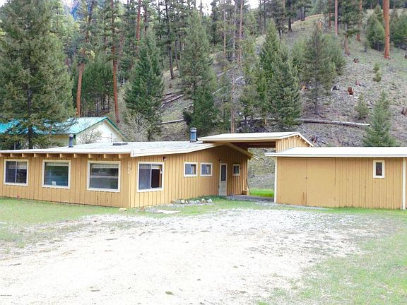 Montana rustic but comfortable cabin with natural wood interior. Bring the toys up to the hitching post! Forest Service abuts property; fishing across from property; Painted Rocks Lake is less than a mile. Great base for that overnight hunting or fishing trip or wonderful retreat for family and friends. 3 additional rooms are being used as bedrooms but do not have closets. Newer well/wiring. Garage has extra room for shop, toys, storage or. . . Nature painted the huge colorful rock outcroppings that change with the hour of day and time of year. Together with the majestic towering pines and rippling (sometimes roaring) river, you have the best Montana has to offer.