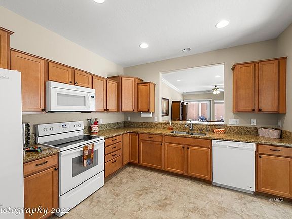 SID PAID IN FULL! This charming Sun City home is the perfect vacation getaway or full time residence. This immaculate 1,240/sf home is open and bright with bedrooms on opposite ends of the home. The Interior features include laminate flooring, window coverings, ceiling fans, water softener, R/O, refrigerator, washer & dryer. The kitchen has gorgeous granite counters and maple cabinets. The crown molding and warm paint tones add to the ambiance of the open floor plan. The primary bath has a large walk in shower and dual sinks. The back yard has an extended covered paver patio, perfect for entertaining or just relaxing with a good book. The sprinkler system has been recently renovated, the trees trimmed and plants replaced. Extra storage and a work bench in the garage. Ring doorbell system,. Simplisafe security system. You're good to sit back and enjoy the good life. Don't forget about the awesome amenities that the Del Webb lifestyle offers, Conestoga Golf Course, 1880's Grill, two pools, pickle ball courts, tennis courts, exercise rooms, arts & crafts and so much more.