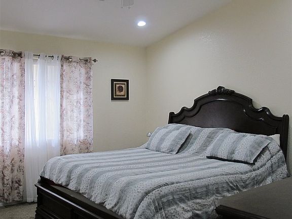 Beautiful 4 bedroom home with fresh paint inside and out. New carpet in bedrooms. Tile in main living areas, kitchen and baths. Updated kitchen with epoxy counter tops, backsplash and large pantry. Master bathroom is to die for with huge walk-in shower, dual shower heads, recessed lighting, dual sinks, linen closet and large walk-in closet. Low maintenance back yard with lots of concrete and a shed for more storage. This one shows like a model. Don't miss out!