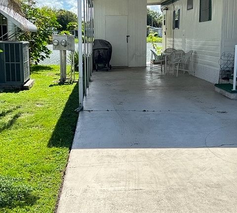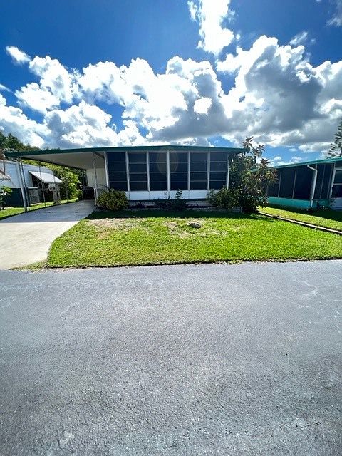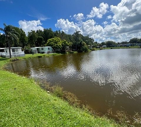 Come see this 2 Bedroom home that sits on the water. Sunroom stretches across entire front of home facing West. Kitchen, Dining and Living room Faces East side and overlooks the water. Beautiful sunrises and Sunsets in your near future. Home is being sold fully furnished. Bring your clothes, tooth brush and beach toys. Brand New AC recently installed along with Brand New Refrigerator. Roof Over was installed approximately 4 years ago. Washer and dryer in shed. Great Location close to Golfing,Beaches, Tarpon Sponge docks. This community is well desired and the lot rent is certainly Affordable. This is a 55+ Community and Unfortunately IS NOT Pet Friendly!!!