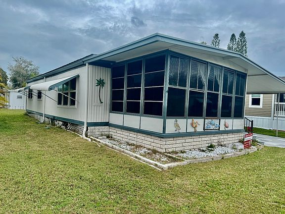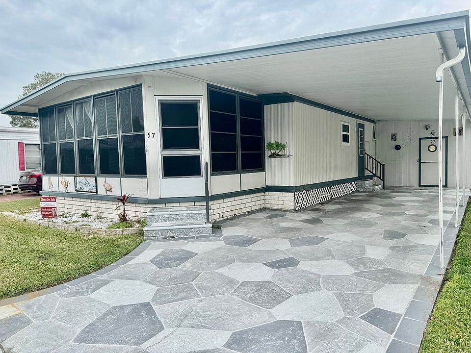 YOU MUST SEE THIS HOME!!!! 55+ Community Great spacious home a Nice enclosed sunroom on the front of the home. The sunroom has new vinyl windows and screens.This area has nice French doors that open up to a large kitchen and plenty of cabinet space and counter tops, it has a stainless refrigerator and new gas stove. The living room and dining area is spacious with plenty of room for family and friends. Washer and dryer are inside the home. The master bedroom is across the entire back of the home And includes it very own private bathroom.It also opens up to the back wood patio where you can watch the evening sunsets. The guest bedroom is directly across from the the guest bath. This home has Extremely nice vinyl throughout the entire home. It has a rubber roof over, nice long with a nice deep finished carport that leads into the workshop or man cave. Tankless gas water heater. Newer Ac. This home is in a 55+ Community. Only pets allowed in this community must have proper documentation. Lot rent in this community is very affordable compared to others. Base lot rent 615.00 + 73.11 Pass through tax total amount monthly 688.11 Water and sewer is metered and only charged for individual usage. Lawn service is 19.00 a month. Inis brook golf corse is just around the corner. You will love visiting Down town Tarpon springs hanging out in the lovely greek community.Close to great restaurants, Beaches,Shopping and airports. If you need financing agent will be glad to walk you through process.Call Listing agent today to take a look at this lovely home..
