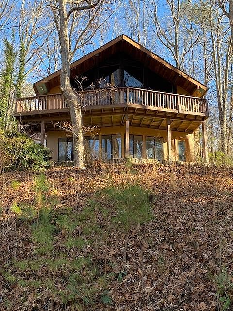Just Reduced. Enjoy your mountain view from an entire wall of window at this charming 2 bedroom & 2 bath chalet. The upper level offers the large living room with stone fireplace, kitchen, bedroom/bath, sleeping loft & large front deck. While the back provides a large deck off the kitchen that is ideal for grilling & outdoor dining. The lower level has a large den with another stone fireplace, new carpet, bedroom & bath plus another wall of windows. Front has stone columns & patio. Carport/storage area under the deck. Located close to Murphy, Blue Ridge & TN. Unlimited outdoor activities, like hiking, white-water rafting, boating, etc. Furniture negotiable. $800 allowance for refrigerator.