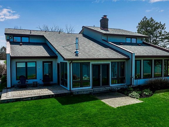 Spectacular waterfront property! Enjoy the panoramic view of Lake Ontario from the abundance of windows in this Contemporary, 3 BR home w/ 2 full and 2 half baths. 2 car attached garage, in addition to a 3-car detached heated garage with office/bonus room above. All situated on a large 1.6 acre lot. High-end updates throughout including Italian terra cotta tile flooring in kitchen/great room, Honduras Mohagany HW in the parlor/dining rm, soapstone counters & Candlelight cabinetry in kitchen. Large primary bedroom with tons of closet space, bamboo flooring, and updated bath with walk-in shower and jacuzzi tub. 4-season sunroom w/wood stove. Cathedral ceilings, very large bedrooms, plus loft/office space on 2nd flr. 1st floor laundry room. Finished basement w/pool table included. Furnace 2yrs old, A/C 4 yrs, tankless HWT 2-3yrs, and newer roof as well. Possibility of adding a generator w/ port available between garages and panel in basement. House currently uses propane, but gas available at street. Just move right into this beautiful home and enjoy the peaceful views of the lake from your own backyard. Close to the Villages of Youngstown and Lewiston, Ft. Niagara, and Canada.