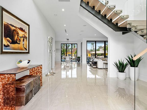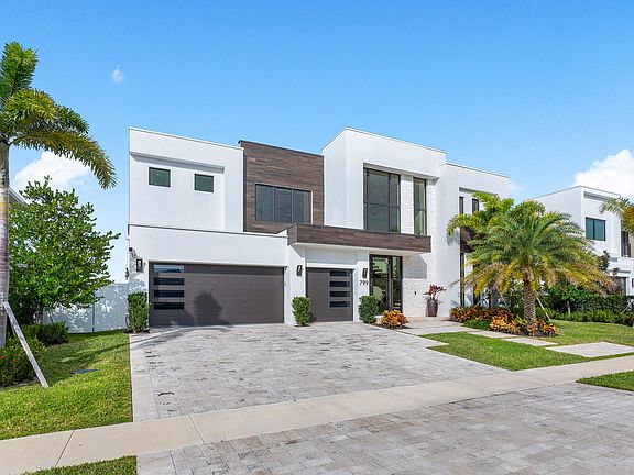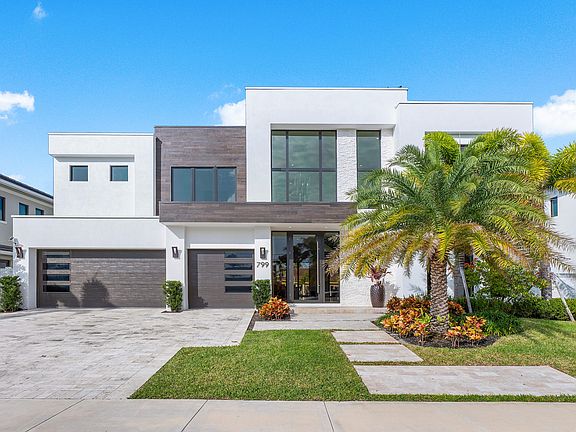 Introducing 799 NE 20th, a Contemporary Marvel Nestled in the Coastal Oasis of Boca Harbour.Step into luxury with this exquisite modern waterfront home, gracing 80 feet of prime water frontage in the sought-after Boca Harbour community. Immerse yourself in a resort-style backyard that defines tranquility, featuring an expansive covered loggia, a meticulously designed saltwater pool and spa, and a 20,000 LB boat lift for boating enthusiasts.As you enter, the home welcomes you with a thoughtfully designed floor plan that seamlessly blends open-concept living with an abundance of natural light. The first floor boasts a bespoke kitchen equipped with natural gas, offering breathtaking views of the backyard and living room. Discover the convenience of a first-floor bedroom suite wit an ensuite that doubles as your private cabana bathroom.