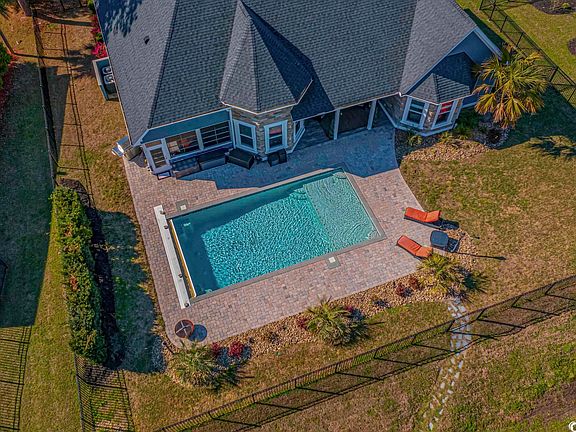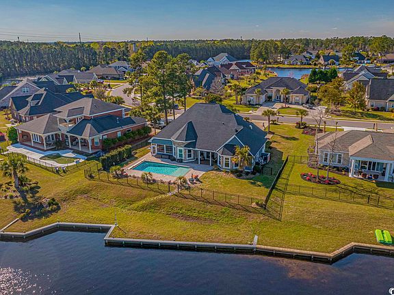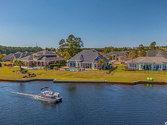 This incredible home has it ALL and located in desirable Plantation Lakes community! This custom built property is situated on a gorgeous lake lot on a large section of the lake that backs to nature preserve area. Bring your pontoon boat to enjoy rides on the lake, fishing, visiting the community clubhouse and parking at the day dock. The home already has a bulk head with a trek decking top and boat slip area. The backyard also features a salt water pool with a retractable electric cover, fountains, paver pool deck, outdoor speakers, electric run in the yard and lights by the boat slip, rock flower beds and a grill that conveys plus a gas grill connection. As you step into the beautiful foyer you will notice all the extra trim work and the commercial grade wood floors. Off the foyer is a room that is set up as an additional living room but also connects to the kitchen so it can be used as a formal dining room. The family room has a gas fireplace, built in cabinets, surround sound and a stunning coffered ceiling. The kitchen upgrades include granite counters, gas range, stainless steel appliances, sil granite sink, under cabinet lighting, custom cabinets, tile backsplash, a large island with plenty of room for seating, plus a spacious pantry with built in cabinets and wood shelving. Off the kitchen is a bay window with a double tray ceiling and plenty of table space. From the side of the kitchen you have a screened in porch with windows and off the family room is a covered porch area. The rare feature of this home is 4 of the 6 bedrooms are on the main level including the primary bedroom. Two of the guest bedrooms share a full bath with a double sink and the other guest bedroom has it's own private bathroom. The spacious primary bedroom has a double tray ceiling with lights, sitting area in the bay window. The luxurious primary bath has dual closets with custom wood shelving and drawers, a linen closet, beautiful tile floors and shower with 2 heads, soaking tub, separated dual sinks with a vanity and water closet. Heading upstairs you have another living area/bonus room and off that is the 5th bedroom that conveys with a built-in murphy bed with custom shelves and cabinets. Off the hallway is a spacious full bathroom next to the oversized 6th bedroom. Most all rooms include ceiling fans. There is also a room being used as an office that could have multiple uses such as for storage or a workout room. The home has some walk in attic storage that can be accessed from upstairs. Back on the main level is the laundry room and as you come in from the garage you are greeted by a drop zone plus extra storage closets. This area leads out to the oversized 3 car garage and it was built extra deep to accommodate longer vehicles and shelving. There are also two side exit doors for your convenience. Sellers have included a 1 year home warranty for your peace of mind. Plantation Lakes community is located in an award winning school zone, nearby grocery stores, new shopping center, medical centers, outlet shopping, plus many outstanding area restaurants. Only 11 miles to beautiful Grand Strand area beaches! Plantation Lakes offers 2 community pools, beautiful amenities center with a gym, playground, basketball court, tennis court, sand volleyball courts, sidewalks throughout and approximately 15 miles of shoreline on the private lake. Schedule your live tour or ask your agent about the video tour!