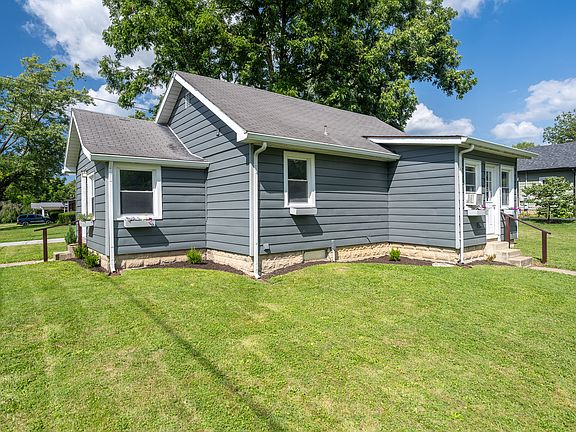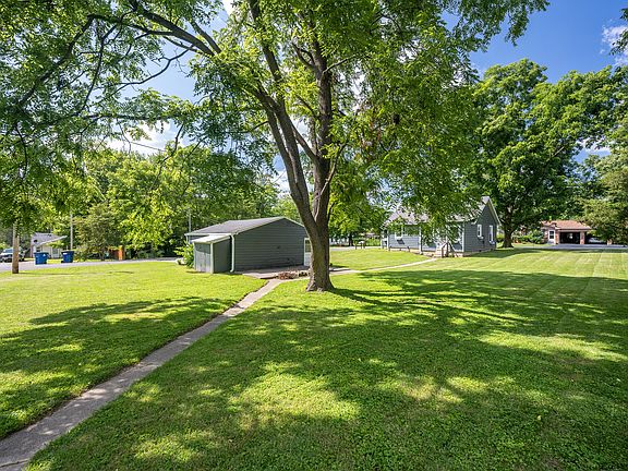 Take note of this 2 bedroom, 1 bathroom bungalow on two city lots with detached 2-car garage. Large yard and lots of potential. Large living room with hardwood floors, eat-in kitchen, and laundry/mud room. Has been a great little rental house in the past. Make this your primary residence or keep as an investment property. The full bathroom has been updated, new paint throughout, new sinks, and new gravel in front of the garage. All kitchen appliances and washer and dryer included. Low-maintenance aluminum siding.