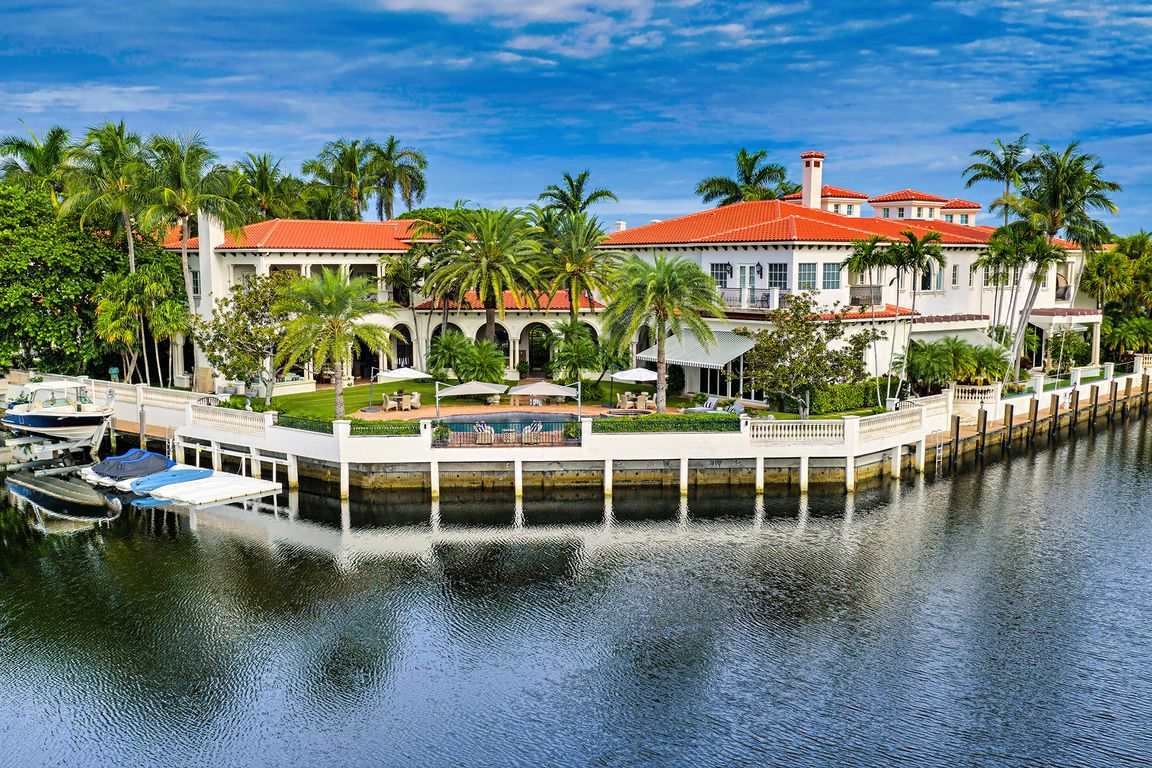 Palatial Palm Beach-inspired Sanctuary masterpiece originally built by Dan Swanson of Addison Development, with stately main house and separate guest/carriage house on 2 trophy southeast point lots surrounded by 350 +/- feet of secluded shoreline for multi-yacht dockage. Enter glamorous interiors featuring bespoke updates from a grand-scale foyer, formal living and ...