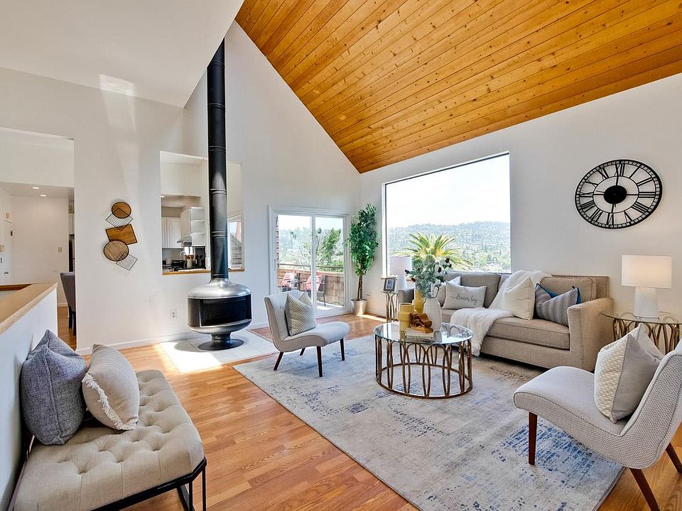 Very rare Albany Hill 3 bedrooms and 2 baths townhouse-like condo with tremendous East Bay cities and Berkeley Hills view from all windows at living room, dining, kitchen, patio, master suite, and the other two bedrooms! The main living area has soaring ceiling, open plan layout, and newly replaced glass doors lead out to wide east-facing patio with view all day. Updated kitchen with new appliances and spacious pantry. Stairs to downstairs with master suite, 2 other bedrooms, hallway full bath & laundry. Spacious master suite has east-facing windows with bright view, walk-in closet, nice retreat area perfectly for study area, and updated master bathroom. The other 2 bedrooms are good sized, one bedroom has walk-in closet. Individual electric heater control at each bedroom & living level. Cozy fireplace @ living room. HOA $471/month includes house water bills! Attached shared garage has 1 parking space. Easy off-street parking all day. Down the road of Taft Ave is Albany Hill & Creekside Park, nice park to take daily exercise right outside of the house, and enjoy the Bay, Golden Gate Bridge & Pacific Ocean view every day. Great Albany schools. This is the house you dream about & cannot miss! Come to look!