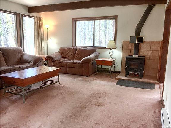A beautiful one of a kind home nestled nicely in the woods! This home has wonderful space and layout. The home opens to the living room with a cozy wood stove, a spacious kitchen/dinning area with big skylights making it bright with natural light. The kitchen features high ceilings which opens up to one bedroom up (non-conforming) and one bedroom on the main level. The main level has a 3/4 bathroom and a laundry room. From the living room walk up stairs to a spacious master bedroom with high ceilings, a walk in closet and a full bathroom. You will love the location, the house sits on 2 lots and is just a quick drive into town but is hidden in the trees to give you ample privacy. The detached garage has tons of space for up to 4 cars and is a great place to store all your fun toys, tools, and more! Call today to arrange a showing.