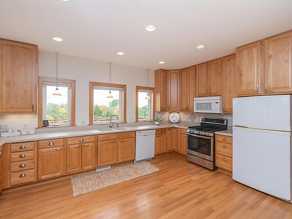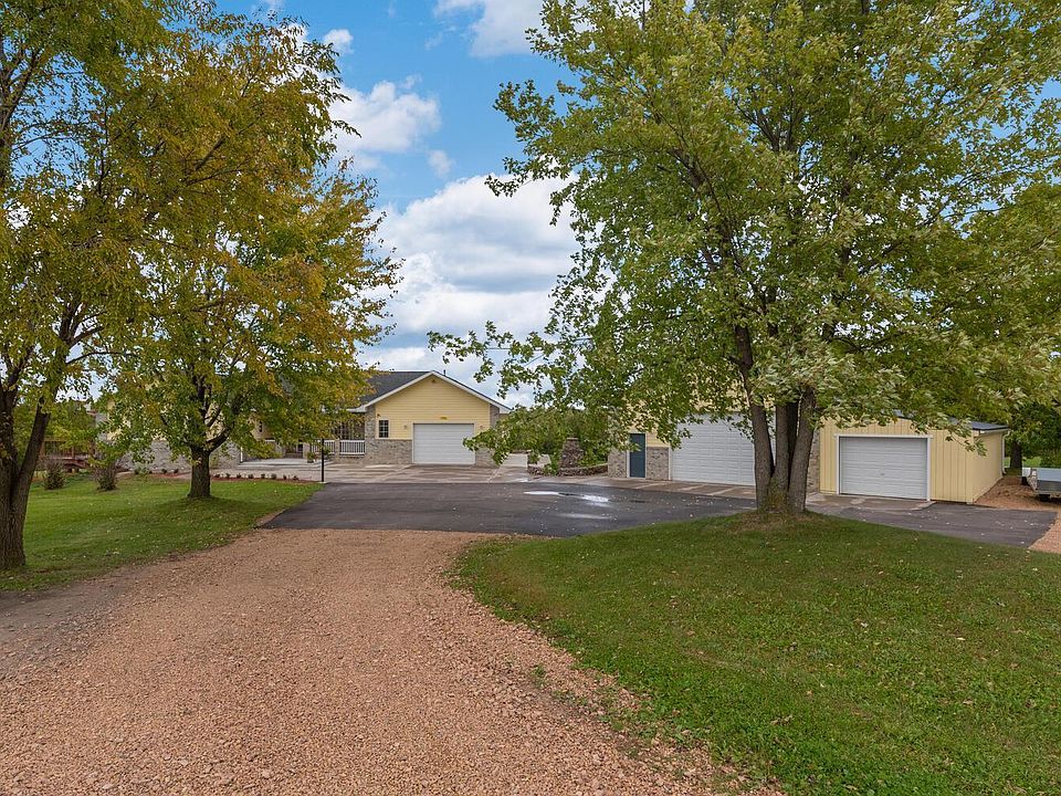 Outstanding rambler style home on over four acres near Saint Boni and highway 7. Spacious kitchen has plenty of room for family dining and entertaining or add a center island. The kitchen and opens up to the main level living room where you will find a vaulted ceiling, arched entryway, and bullnose finishes. Step out to the massive deck to entertain guests! The home is located on one of the higher points in Minnetrista where you will have a commanding view of the wetland and trees! Master bedroom has a walk-in closet area as well a 3/4 bath. Spacious mud room and laundry located just off the kitchen. The walkout lower level offers in floor heat and cedar paneling finishing as well as 4 more bedrooms. There is also a sauna with a three quarter bath. Enjoy a mechanics dream garage with in floor heat, insulated walls, shower/restroom, extra tall ceilings, and plenty of lighting. There is also a patio area and granite fireplace for entertaining.