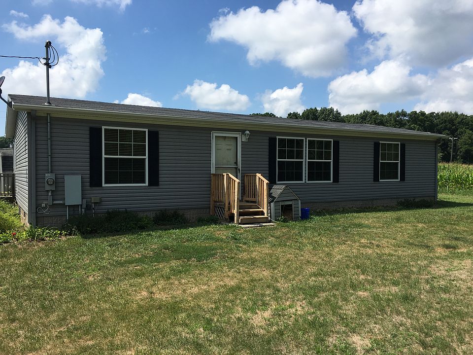 Welcome home to your neat and tidy 2005 modular ranch on private 1.63 acres with a partially wooded lot that backs up to corn fields, with 3 bedrooms and 2 full baths. This open concept home offers privacy while still being close to town. Large eat-in kitchen with doorwall to your outdoor oasis! Kitchen has wood cabinets, tons of counter space, white appliances, and is conveniently located next to your main floor laundry. Master bedroom has a full bath en suite with large tub and shower! It features an extra large mechanics garage with power and room for all of your toys! Schedule your showing today!