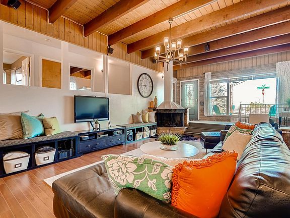 Classic Mid-Century Modern Ranch! Preserved features and clean lines with the added convenience of updates define this home! Open concept floor plan with sunken family room bordered by natural Colorado stone wainscoting and cylindrical fireplace flue - a perfect space for entertaining! Exposed wood beam ceilings throughout. Large picture window provides mountain views from front of home. Master bedroom has 2 sets of French doors, one leading to a sun room which could also be an office, nursery, exercise room. There are 2 more bedrooms and 2nd bathroom along an interior hallway. Laundry room is large enough to house a craft area - could also be office area! Back yard is maintenance free and affords perfect space for a fire pit, outside fun, hot tub. Light rail is blocks away and entrance to Boulder Bike Path minutes - Very hip and cool home!