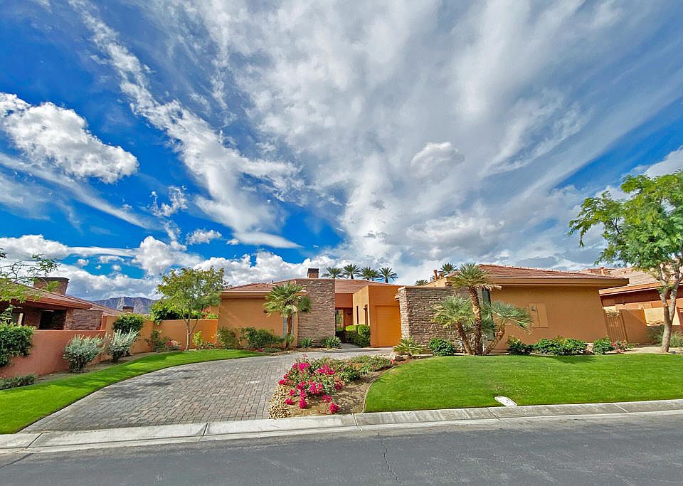 Welcome to Palmilla, La Quinta's premier guard-gated enclave where modern desert architecture meets serene luxury. This rare, detached Palo Brea residence--one of only six in the community--offers a coveted blend of privacy, design, and lifestyle. Technically a 3-bedroom home, this layout lives more like a 2-bedroom plus office/den, with the third bedroom thoughtfully configured as a dedicated workspace--ideal for remote professionals, creatives, or a quiet retreat.Step through the courtyard into a light-filled, open-concept interior with stacking glass doors, a cozy fireplace, and elegant tile flooring. The chef's kitchen features premium stainless appliances, generous prep space, and seamless flow for entertaining.Out back, enjoy a west-facing private oasis with mountain views, vivid sunsets, and a sparkling pool and spa--perfect for unwinding or hosting under the stars. The oversized patio and fully enclosed yard are ideal for pets, play, or peaceful reflection.Additional highlights include:Freshly painted interior, walls, ceiling, and doors. Brand new Berber carpet in bedrooms and office. Air-conditioned 'Costco room' for bulk storage. Dedicated golf cart garage. HOA-maintained front landscaping. Quiet interior location within the community. Palmilla is minutes from world-class golf, dining, and shopping, yet feels worlds away. Priced for immediate sale, this is your chance to own one of Palmilla's most unique and pet-friendly retreats. Exceptional value. Rare model. Unmatched lifestyle.