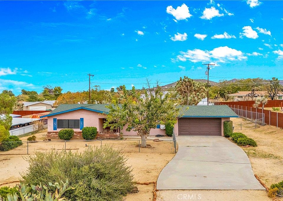 Welcome to this affordable and well-maintained 2-bedroom, 2-bathroom home, offering great functionality and outdoor living space—perfectly located in a desirable neighborhood of Yucca Valley. As you arrive, you'll love the large circular driveway, offering plenty of parking and convenience. There’s also a drive-thru gate leading to the fully fenced backyard, making it ideal for storing RVs, trailers, or desert toys. The front yard includes a fenced section, providing a perfect space to relax with pets and enjoy the desert sunsets. Inside, you’re greeted with a spacious living room, offering a great layout for gathering or quiet evenings. The kitchen features charming Saltillo tile flooring, ample cabinet space, and is open to the large dining area, making it both practical and welcoming. You’ll enjoy direct access to the 2-car garage, which includes laundry hookups and another convenient access point to the backyard. Both bedrooms are generous in size, with the primary bedroom featuring a walk-in closet, its own slider to the backyard, and a private ensuite bathroom with walk-in shower. The guest bathroom includes a shower/tub combo and a newer barn-style sliding door for a stylish touch. Other features include: Mini-split systems for energy-efficient heating and cooling, Central heating and an evaporative cooler, Covered back patio, Cross-fenced backyard—great for pets, children, or separate garden or play areas. With its versatile layout, great yard space, and plenty of room for parking and storage, this is an ideal home for first-time buyers, investors, or anyone looking to settle into Yucca Valley at an affordable price. Homes like this don’t last! Schedule your private tour today!
