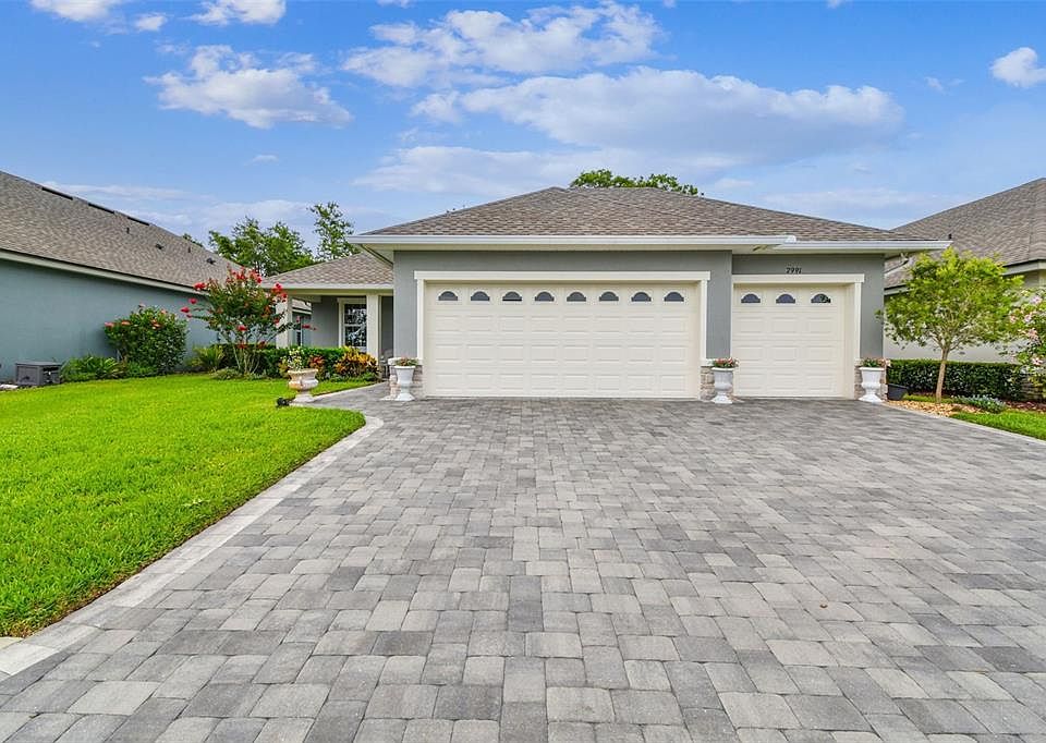 Seller Incentive: Existing whole-home warranty through 2027 is fully transferable to the new owner at closing. Coverage includes major systems and appliances (electrical, plumbing, garage motor, kitchen appliances, etc.). Rare 3-car garage home in Lake James — and this one brings upgrades you won’t find in most homes in the community. The garage is air-conditioned, making it ideal for a workshop, hobby space, storage, or golf cart parking year-round. Outside, the property has been thoughtfully improved with professionally sealed pavers, new gutters on both front and back, French drains, exterior flood lighting, and a freshly landscaped backyard for low-maintenance outdoor living and enhanced peace of mind. Built in 2022 by Ernie White Construction, this home offers the benefit of newer construction without the wait. Inside, the 1,890 sq ft split-plan layout features high ceilings, soft natural light, and custom cabinet + ceiling paint for a polished, inviting feel. The kitchen is well-appointed with stainless steel appliances, a large center island, and plentiful storage that makes everyday living easy. The front flex room provides versatility for an office, den, sitting room, or creative space. The primary suite includes a spacious walk-in closet, dual vanities, and a large tiled walk-in shower. Step out onto the screened-in lanai, which overlooks the refreshed backyard — a comfortable extension of your living space that feels private and peaceful. Located within the gated 55+ Lake James community, residents enjoy access to a heated pool, fitness center, clubhouse, library, game rooms, and outdoor features including shuffleboard and bocce ball. HOA covers lawn maintenance, basic cable, and internet, providing simple, low-maintenance living. Just 4 miles from I-4, with convenient access to dining, shopping, healthcare, and Lakeland’s seasonal events. A home that offers comfort, thoughtful upgrades, and lifestyle convenience — one of the few opportunities in Lake James with a 3-car AC-cooled garage and this level of finish.