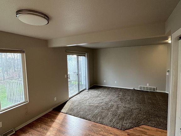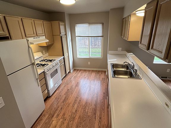 Large three-bedroom townhouse. Fireplace, deck, central air conditioning, washer/dryer hookups, 2 baths, attached garage with electric garage door opener, city water and sewer, trash, snow removal, lawn care included.