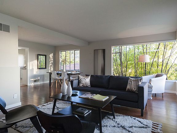 Stylish Contemporary with great natural light that shows beautifully! Stunning refinished hardwood floors throughout. Amazing park-like yard with patio. Downstairs in law with full bath and kitchenette. Attached garage plus driveway parking. This home is a must see!