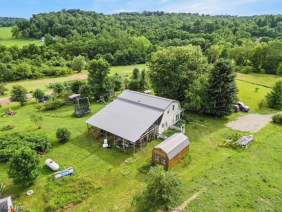 Cape Cod/1.5 story home in West Muskingum Schools. This home sits on 5.4 beautiful acres loaded with several types of fruit tree and black berries! Covered front porch. First floor offers living room with wood burning stove, large dining area with full kitchen, 1 bedroom, full bath and first floor laundry. Second story has 3 bedrooms and 1 full bath. Newer metal roof, wood laminate. Storage shed and old barn included.