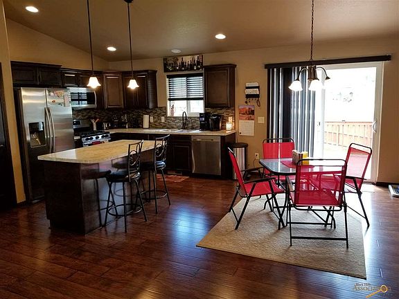 Listed by Kevin Kuehn, South Dakota Real Estate Company. This fabulous, like new 5 bedroom, 3 bath, 2 car garage home located on a lot right next to the community park with playground equipment, picnic shelter and basketball court. This wonderful home has a huge redwood fenced back yard that could handle the biggest of families or pets. With views of the hills and foothills, it falls into that sweet spot of a location. An RV pad with power is located next to the home. The spacious kitchen with a center isle and sit up counter, allows for great cooking space as well as a place for family and friends to gather. The high end floorings and cabinetry in the kitchen and baths make this a dream home come true. Anderson windows, 95% efficient furnace and class 4 impact resistant shingles and natural gas piped to the deck grill are the frosting on the cake. And only minutes away from the new Piedmont Valley Middle School/High School.