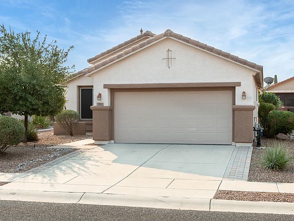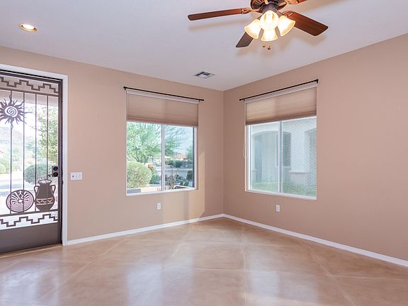 * Cute and efficient Sunrise model home encompasses 1096 sq ft, 1 bedroom, den, 1.5 baths and 2-car garage. The home is located on a cul-de-sac street with a private entry patio offering a place to sit and relax. Stained concrete floors in living area add the unexpected. Raised panel upgraded cabinetry in the kitchen with marble-like counters. The owner's suite is located at the rear of the home providing added privacy. The en-suite has been updated with a walk-in shower and single vanity. The den can serve dual purposes as a den or extra bedroom, and is conveniently located near the half bath. The laundry area is inside the garage. Lovely extended covered rear patio with sun shade makes creates a sweet spot to unwind. All appliances convey!