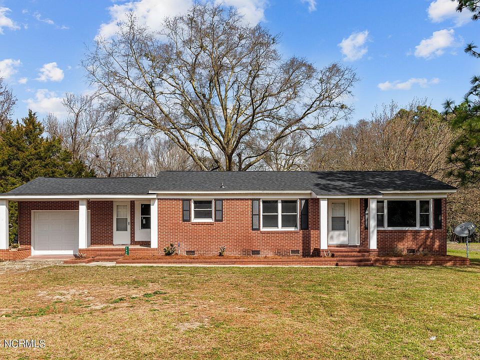 Check out this brick ranch style home with three beds, 1.5 baths in Lenoir County! No city taxes!! Updates include new paint throughout home, light fixtures, appliances, refinished hardwood floors throughout, roof and both bathrooms. Deep Run water, Duke power and septic on-site.