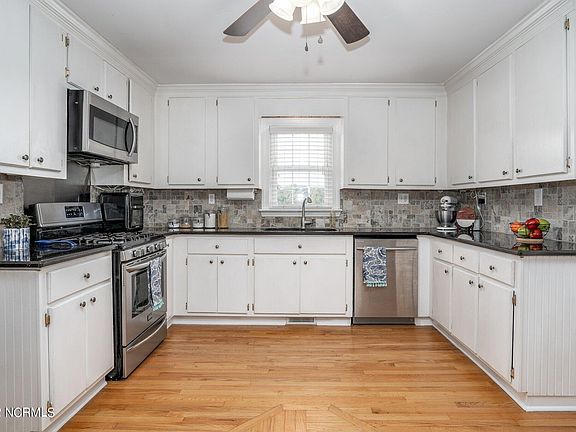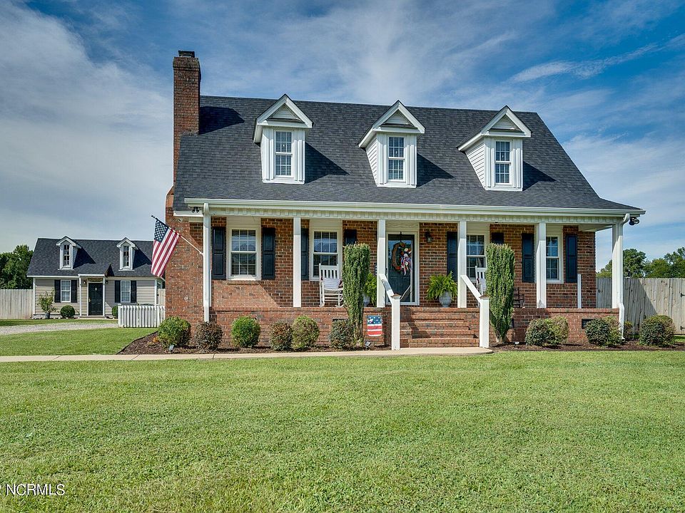 Well maintained 1.5 story brick cape cod home with 3 Bedrooms / 2.5 Baths on 1.04-acres for sale in the Sandy Cross community in Nash County. Kitchen features lots of upper & lower cabinets for storage, Stainless appliances & eat in kitchen area. Separate formal dining room with Hardwood floors throughout the home. Half Bathroom is located on the lower level. Warm & inviting Greatroom with fireplace. Master Bedroom is on the first level with adjoining Master Bath. Upstairs are the 2 additional Bedrooms and one full Bath. Extra bonus area currently being used as an office area. Spacious deck across the back of the home with a concrete patio just off from the deck. Fenced in backyard with plenty of room for family gatherings, cookouts, and entertainment. Also, space for gardening. Includes a wired oversized 2-car garage / workshop (679 sq ft)