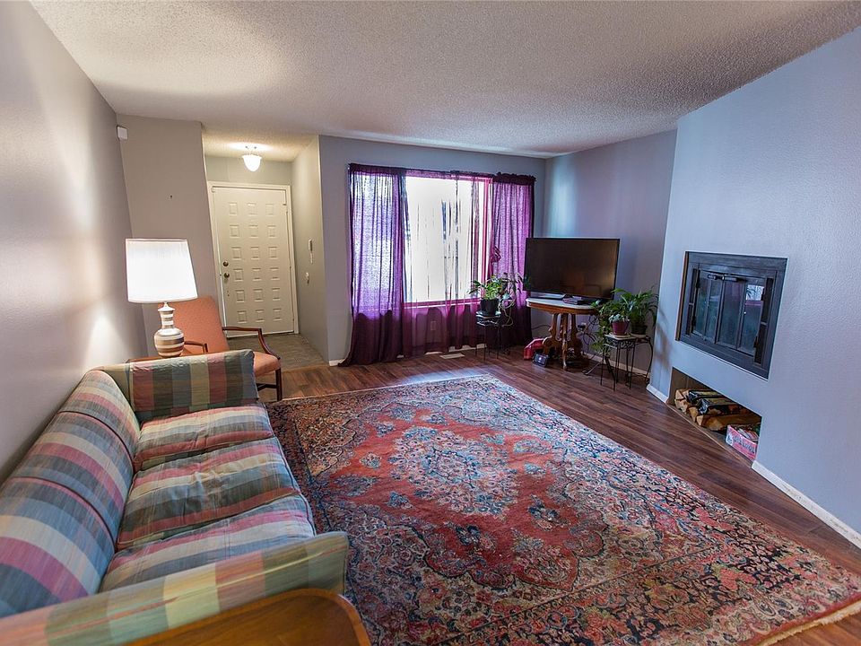Must see!!This end unit Condo with an attached garage is near pool and club house. Rare entrance from garage to home makes this unit unique. Freshly Painted. 2 large living spaces. Wood burning fire place.