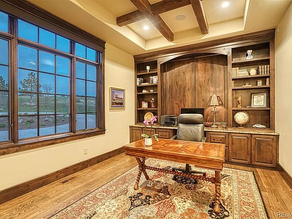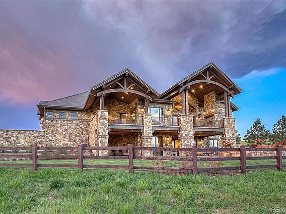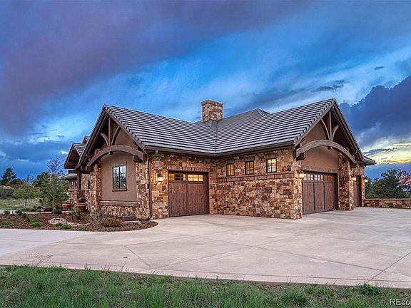 Exceptional attention to detail awaits in this magnificent Sterling Custom Home in the coveted Colorado Golf Club. Distinct real Telluride stone, masonry brick, and striking wood arched beams greet you as you enter this one-of-a-kind custom. Built with a fabulous sense of space and style, this ranch-style Colorado mountain estate is the perfect culmination of luxury living and includes 6 garage spaces. Soaring ceiling/arches with exquisite detailing as you make your way through this 8,811 fin -square-foot masterpiece. The lot perched above the trees boasts endless views from every room. The kitchen features Decora' custom cabinetry, 48in Thermador range with a rustic custom hood, Double Thermador Ovens, large kitchen island, and a butlers pantry with warming drawer. The incredible main level family room nano doors open to a wrap around covered deck with a built in outdoor kitchen and fire place to create the perfect outdoor Colorado retreat. The Master Suite boasts 2 fireplaces, a five piece luxury bath and large closet with custom built- ins. Downstairs, you are transported to wine country in the expansive, stone wine cellar. The full bar and large recreation area make another great space for entertaining. Venture out of the back door to the serene, relaxing covered and heated patio, and a private outdoor covered living space with a fireplace. You will also find stone seating walls and a large fire pit overlooking the treed open lot. The separate Casita includes a state-of-the-art, professionally designed, 15' Full Swing Golf Simulator, which provides for family games, live streaming, t-ball, and over a dozen interactive games. The Golf Simulator, family room, and bathroom include a bar and beverage area room, two refrigerators, and an ice maker. Upstairs welcomes you into a gorgeous custom-built and professionally designed office with an abundance of built-ins. Along with breathtaking and panoramic views of the front range, the upstairs includes a guest bedroom, bath, and kitchen area. This 1.87-acre property gives you seclusion and offers the epitome of the Colorado Golf Club lifestyle. The Colorado Golf Club offers world class golfing, club house with social dining, swimming, hiking, and the most gorgeous views of the Colorado Front Range. This Colorado Golf Club masterpiece is sure to impress the most discerning buyer.