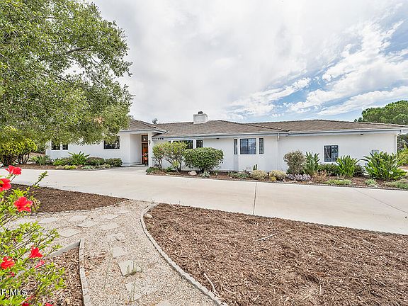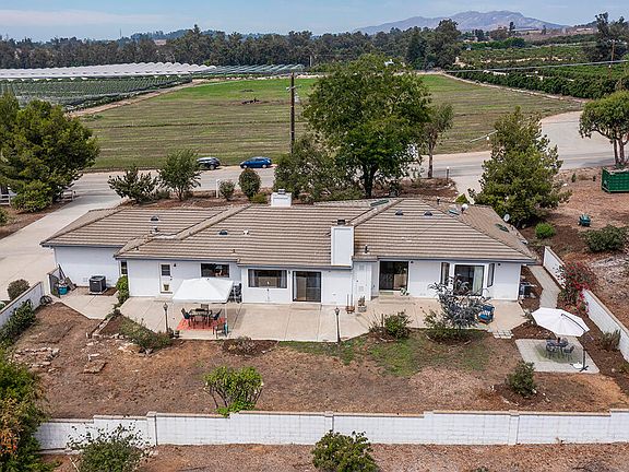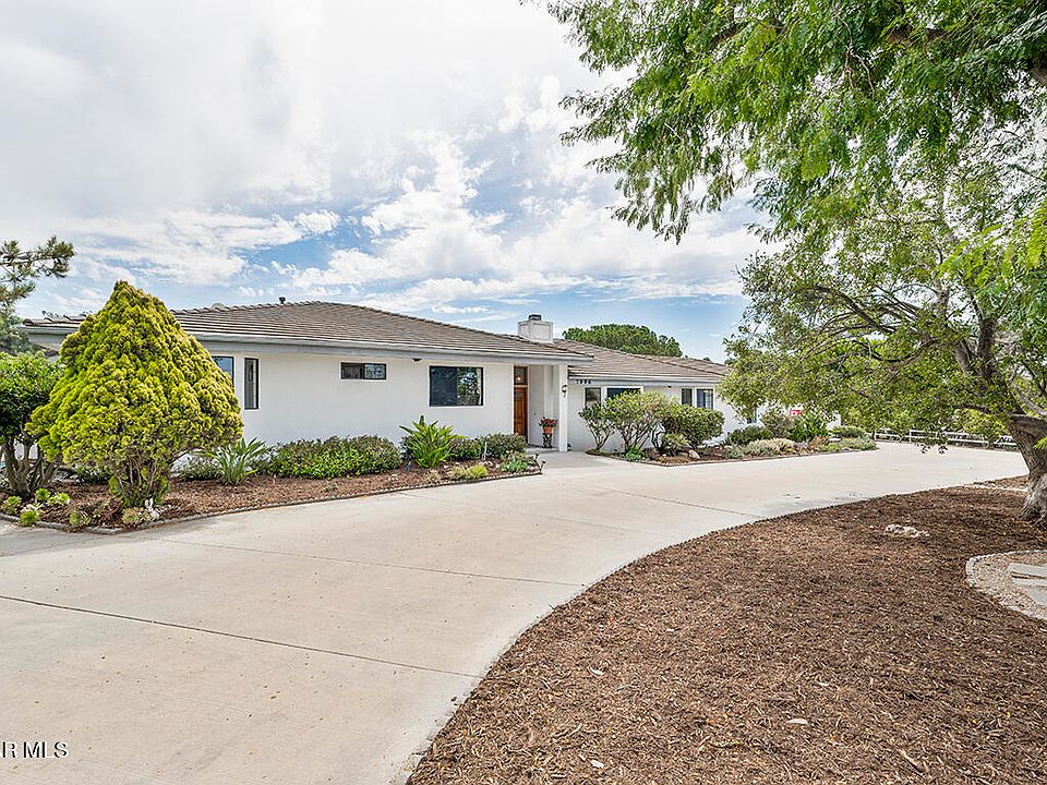 Country living just outside town! Charming custom ranch style home featuring four large bedrooms, three bathrooms, and approximately 3,015 SF of living space. Mostly flat 2.3-acre lot with plenty of space to create your dream property. Wide circular concrete driveway. Home is set back from street. Extra-large 4-car detached garage as well as a 2-car attached garage. Very large kitchen, great room, and living room. Vaulted ceilings. Beautiful wood flooring. Dual air conditioning. Fireplace in great room and living room. Beautiful light throughout with big windows on all sides. Sun rises on back of property, creating a glow on the master/kitchen side of home and sets on frontside for sunsets from the dining room and living room. Avocado trees and a variety of fruit trees including lemons, oranges, pomegranate, persimmon, peach, apricot, fig and more. No HOA. Zoned agricultural.