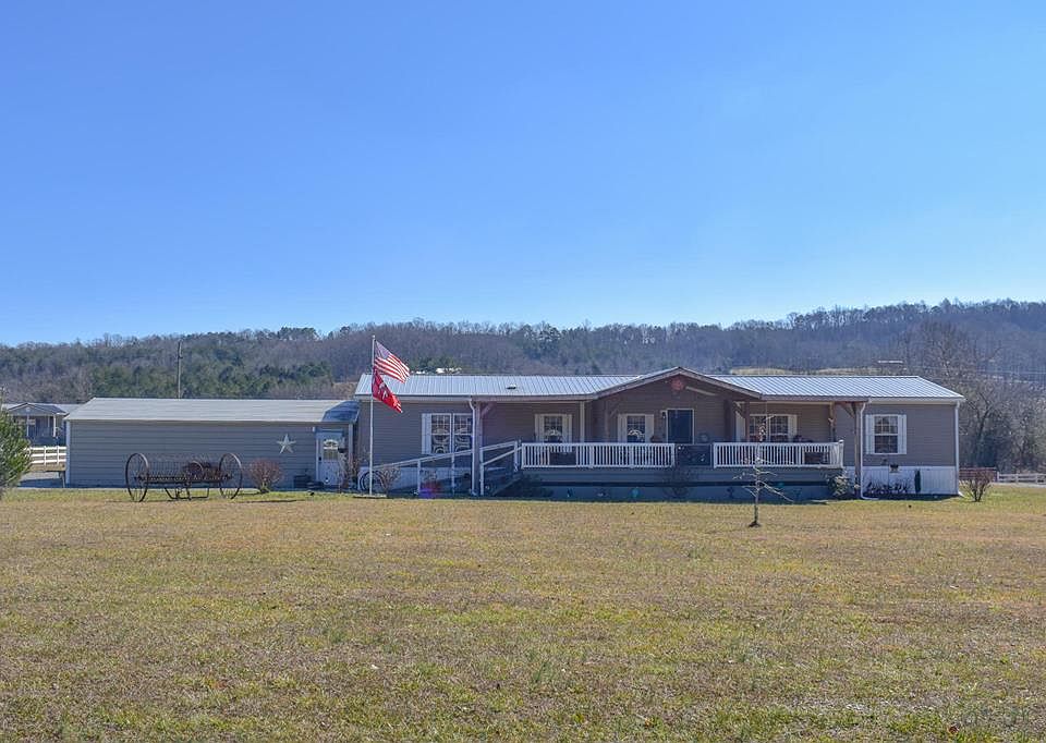 Welcome Home! If you're looking for a quiet, country setting with gorgeous mountain views and a level yard... THIS IS IT! This adorable 4 bedroom, 2 bathroom manufactured home sits on just over 3 acres! Property is completely fenced in. This adorable home features a covered front porch and a screened in back porch to enjoy the lovely views from all angles. Open concept floor plan and split bedrooms allow for great entertaining space. Property includes a 2 car, detached garage as well as a workshop complete with electricity. Bring your camper/RV because there is an RV carport on site complete with electrical and propane hookups. Don't miss out on the opportunity to have your very own sanctuary complete with mountain views!