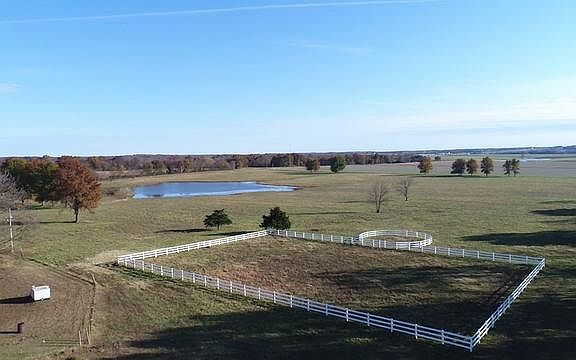 Beautiful Equestrian Ranchette for sale just north of El Dorado Springs and southwest of Osceola in St Clair County, Missouri. This quiet, secluded location leads to miles of graveled roads that can be used for trail rides. In addition, there is 1,000s of public land acres surrounding Truman Lake and Stockton Lake for additional riding use. The farm is ~70 Acres of mostly open pasture with a 4 acre lake accenting the property. The outbuilding improvements consists of a 44'x90' bard; a 40'x60' horse barn with 12'x20' tack room & some box stalls with individual doors leading to pasture; and a 24'x30', 2-car detached garage. Additional property improvements includes: fencing and cross-fencing, heated waterer, corral, large training pen, exercise pen, in-ground storm shelter, and more!