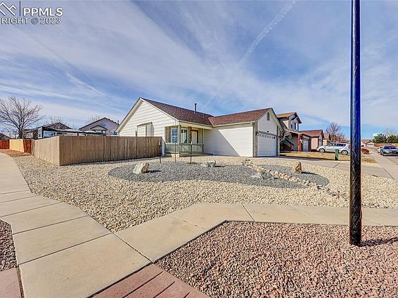 Welcome home to this lovely rancher on a corner lot. Brand new Luxury Vinyl flooring on main level and fresh paint throughout has immense appeal. New backsplash in kitchen adds to the bright and cheerful atmosphere. Bay window in living room with Plantation Shutters lends a modern feel to the spacious living room, and gas fireplace makes for cosy evenings. Location is everything and this home's proximity to Peterson, Schriever and Fort Carson is highly convenient. Front yard has been newly Xeriscaped with no maintenance, leaving the homeowner plenty of time to enjoy the Colorado Summers on the front porch and rear patio. No worries if it gets too hot, as Central Air is there to cool off this wonderful house.