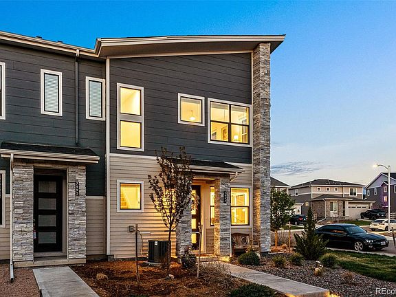 Welcome home to this stunning 3 bed 3 bath end unit townhome in Sterling Ranch! Situated in the perfect location nestled up against the foothills, walking distance to Chatfield Reservoir and Botanical Gardens, Roxborough Park, Waterton Canyon, and over 30 miles worth of trails, what's not to love about this new construction?! With over $40k worth of interior upgrades, every detail has been considered throughout. The floorplan allows for a functional layout with the main floor serving as the perfect space to entertain. The expansive living room features 9' ceilings, south-facing windows that fill the room with natural light, gorgeous flooring, and a surround sound speaker system. The pristine kitchen has a pantry, gas range, 42" upgraded cabinetry, quartz countertops, large center island, and stainless steel appliances. A sizable dining nook, powder room, and entry to the large 2 car garage make up the remainder of the first floor. Upstairs, the primary suite features vaulted ceilings, South and West-facing windows, gorgeous views of the mountains, walk-in closet, and an en-suite 5 piece bathroom. Also upstairs are two additional bedrooms, a full bathroom, and a laundry room, complete with cabinetry, shelving, and plenty of room for storage! This low maintenance home also comes with a solar panel system the owners have completely paid off, so no lease for the new buyers to assume! Sterling Ranch residents get access to the recreation center with a pool, clubhouse, and fitness center, as well as a Colorado States Parks Pass to enjoy! Don't miss out on the opportunity to call this amazing property home, and schedule a showing at your new home today!