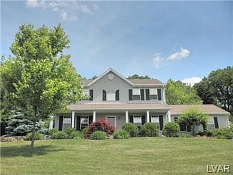 Stunning, serene setting for this four Bedroom Northwestern Lehigh colonial...Spectacular four season views with a wonderful variety of mature trees, perennials & professional landscaping. Covered paver patio leads to semi-circle fire pit area with seating--great for casual gatherings or quiet relaxation. Upgraded Kitchen with beautiful granite counters, abundant cabinets, tile backsplash & high end stainless steel appliances. Gorgeous oversized tile flooring leads from front entry through Kitchen, dining area & to garage. Drop-zone in back hallway with built in cabinets provides storage & a perfect place to organize your daily life. Great trim details throughout the home, including built in bookcases in the Family room, add charm, interest & warmth to this well maintained property. Located just 4 minutes from route 100 with easy access to 78/309/PA Turnpike--close to shopping, schools, recreation. A great find!
