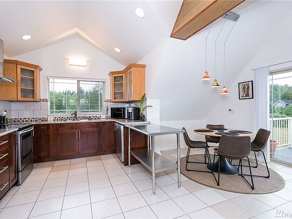 2 bedroom home atop a large shop with beautiful balcony views of Mt. Baker. 4.85 acres of level and private space with 2 outbuildings. Bring your green thumb and animals along with equipment and RV! Updated finishes including radiant floor heat, tile and stainless appliances. 2 overhead doors open to a 1,000+ sf shop with a 3/4 bath.