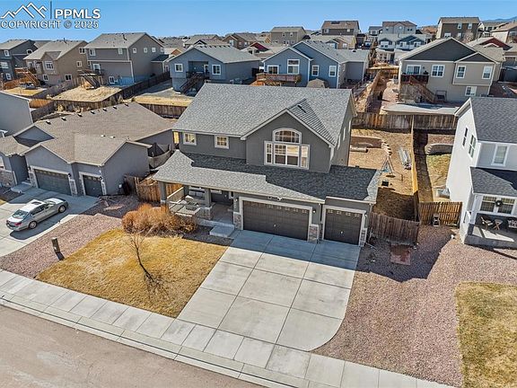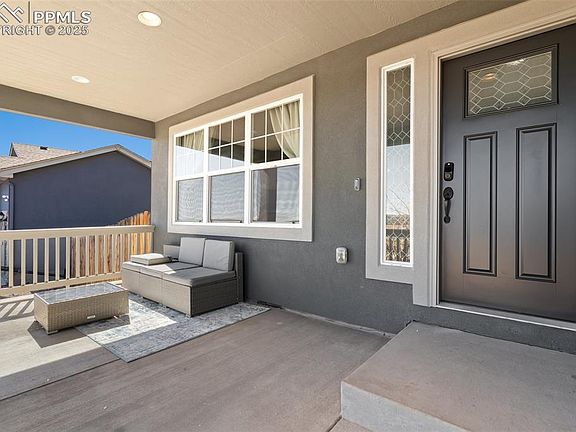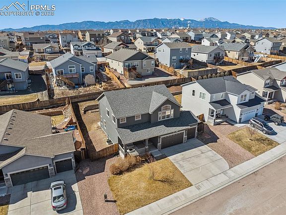 Colorado dream home! This meticulously maintained Aspen View home blends modern features with timeless comfort. Thoughtfully designed, this stunning four-bedroom, three-and-a-half-bathroom home with a four-car garage offers an exceptional living experience. The freshly painted stucco exterior and inviting covered front porch set the stage for what’s inside. Step through the front door and be welcomed by abundant natural light streaming through oversized windows, illuminating the new premium LVP flooring throughout the main level. The open-concept design seamlessly connects the living, dining, and kitchen areas, making it ideal for entertaining. The gourmet kitchen is both gorgeous and functional, featuring granite countertops, stainless steel appliances, a large walk-in pantry, ample cabinetry, and generous counter space. A grand staircase leads to the upper level, where comfort and convenience await. The expansive primary suite is a true sanctuary with an oversized walk-in closet, wrap-around access from the laundry room, and a spa-like ensuite bathroom with a deep soaking tub, double vanity, and separate shower. A versatile loft offers additional space for a home office, media room, or lounge. Two additional large bedrooms and a full bathroom complete the upper level. The fully finished basement expands the home’s livability with a large bedroom, full bathroom, and living area with a wet bar. Whether used as a guest suite, home gym, or entertainment space, this area offers endless possibilities. Step outside to your private backyard retreat, where an extended back patio provides the perfect setting for outdoor dining and entertaining. Raised garden boxes await your personal touch. With direct access to open space and scenic biking and hiking trails, adventure is just steps away. Near schools, shopping, dining, grocery, and military bases, including Fort Carson, Peterson SFB, and Schriever SFB. Schedule your showing today!