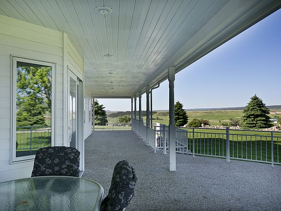 Picturesque Ranchette House Foundation - Poured concrete 9" wall, 10' high on 10"x20" footingBasement Floor - 5" concrete reinforced with wire mesh on 8" of gravel. Sump pump with drain tile around perimeter.Floor Joists - 90% 11 7/8 x 1 7/8 microlam, 16" on center. Other 10% on short spans are 11 7/8" BCIExterior Walls - 2"x6" studs with 16" on center, 9' ceilings.Interior Walls - All 2"x4" with 16" on center.Insulation - All interior walls and floors are insulated 6" R-19 on outside walls, blown-in cellulose in attic for R-38.Flooring - Hardwood, carpet, tile and vinylWindows - Pella casements with blinds in windowWoodwork - All oak, including kitchen cabinets, doors are solid oak panel doors. Kitchenette in the basement has hickory cabinets, gas range, dishwasher, refrigerator, and microwave. Tiled floor in basement kitchenette has in floor heat.Gas Fireplace - One in basement with native rock veneer and one in craft room above garage.Furnaces - 3 high efficiency natural gas furnaces and air-conditioning units. One for each floor of house. Includes efficiency dust collectors on each furnace and humidifier on main floor furnace.Roof - Rafters 2"x8", 16" on center, reinforced 40 year Hallmark shingles. 6' R-19 on outside walls, blown-in cellulose in attic for R-38.Decks - Wrap around porch with exposed aggregate on 3 sides of house 20'x28' deck patio in back with exposed aggregateSiding - Hardyplank (80% masonry and 20% wood)Shooting Tunnel - Access from basement as well as 100 yards from lower patio with reloading room with bench, as plus additional storage.Shooting Room - wrapped in 1 1/2" Tectum board (acoustical)Driveway - Reinforced 5" regular concrete with 16" borders (colored and stamped concrete). Remainder of drive 4" blacktop.Barns - Large horse barn is 32'x40' with a 16'x40' lean-to on the east side, concrete walls and 5" concrete floor, reinforced concrete ceiling/floor (haymow) 7'x9' overhead door accessible as rear of barn for haymow. Balance of structure is wood frame 16' center. Includes tack room with shelving for storage insulated with spray-on foam on sides and roof of this particular room. Also inside large barn are land stalls (east side) and large room to accommodate lawn mowers, horse trailer, and other space as well, barn can be used as tool shed or for chickens. Has concrete floor as well as electrical outlets inside. Has 4" thick, and size of building is 12'x17'.Corrals - Hi-qual steel panels and gates with automatic Richie waterer.Fences/Landscaping - White board fence is 2"x8" with reinforced concrete posts set in concrete-filled holes. South Dakota native stone used as landscaping as well as exterior facing on many exterior walls and around foundations of all buildings. At the entrance there is a 22,000 lbs. boulder from Salida, Colorado with "North Fork" engraved.Sprinkler System - 17,000 sq. ft. of automatic sprinkler system with lawn to be planted this fall. Each individual tree having it's own underground water head. Which is controlled in the basement.Tot lot - Heavy duty playground, with curbing and small stone for base.Tax Information - 2014 property tax on the estate was $6,918.98Natural Gas - Averages (this year) $113.00 per monthElectricity - Averages $171.00 per monthWell/Water Private Well - 1,352 ft. deep well which connects to the Minnelusa aquifer with a capacity of 27 gallons per minute.Septic System - Private system with septic tank and drain field.Acres - 20.68CANNOT BE SUBDIVIDED
