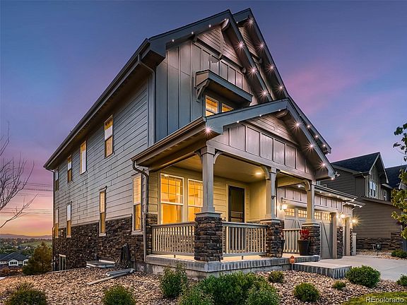 Welcome to 7999 S. Elk Way! This spacious home in the Whispering Pines neighborhood of Aurora truly has it all. Enter through the attached 3-car garage fitted with 220V into a large mud room with plenty of built-in storage for all your winter gear. The adjacent office is bright and sunny with plenty of space to work from home, or trade out the French doors for regular ones and create a main floor 6th bedroom! Kitchen with upgraded cabinets, stainless steel appliances and massive island is perfect for entertaining. Formal sitting room, living room, dining room and powder bath round out the first floor - and nothing beats the drop-dead gorgeous view from the deck, which features rolling green hills, mountains, and awe inspiring sunsets. Upstairs you will find a roomy master with attached 5-piece master bath including deep soaker tub, shower, WC and beautiful tile work. Another full bath and three LARGE secondary bedrooms are perfect for kids, guests, or hobbies. Upper floor also features a loft/flex space currently being used as another living room, but could also be a play room, office, or gym - the options are endless! The huge basement features ample storage, a theater room with raised seating, guest bedroom and another full bath. Walkout basement leads to a sun-dappled orchard of a backyard and is replete with lush trees, grass, and a fire pit area. Home exterior features custom accent lighting for that extra ambiance. If this beautiful abode hasn’t won you over yet, it will when you discover that this home is FULLY SOLAR with solar panels that are owned, not leased - and you will have no electric bill! Imagine what you can do with all the money you will save on utilities. If you are looking for a place to land that is both stunning AND eco-friendly, you have found it here. Welcome home!
