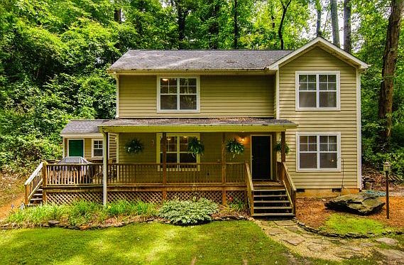 Are you looking for a lovely home in Kenilworth, within walking distance to the hospitals, downtown and the Biltmore Estate & Village? Would you like to live on a quiet street in one of Asheville's most in-demand neighborhoods overlooking a small stream and a wooded slope? Do you like the idea that your home can't be seen from the street? If you?re looking for a great Kenilworth location and oodles of privacy, it?s hard to beat this property. The house can?t be seen at all from the street, and is surrounded by beautiful mature trees on about a 1/3 of an acre. The setting is lovely - there's a woodsy, private yard with a small run-off creek - the only other home you see is the small cottage on the other side of the stream . Pergo-type flooring in the open plan living area and oak stairs lend a craftsman quality to the home. There are 4 bedrooms - 3 upstairs - a master with ensuite bathroom, plus two more with a 2nd bath in the hall. The fourth bedroom is on the ground level and makes a great den or family room. There's a half bath off the kitchen and washer dryer hook up.