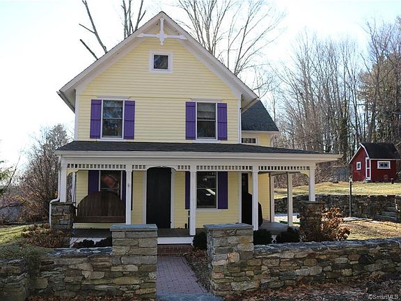 This charming farmhouse colonial has been lovingly updated while keeping those classic details Offering 2-3 bedrooms, a kitchen with stainless steel appliances, updated electrical and lighting, a gorgeous tiled mudroom with slider to yard, beamed ceilings, millwork and built-in features, 1st floor laundry, a wrap around trex deck with an iconic porch swing, and updated bath, this home is a hidden jewel just a stone's throw from the historic village center and the Airline Trail. The house is nestled on a back lot, with a post and beam barn, shed and kennel or chicken coop, stone walls, and a stone patio. Large Master Bedroom with lots of closet space has an additional room for office or can potentially be converted into a Master Bathroom. There's also a walk-up attic that can easily be converted into a 3rd bedroom