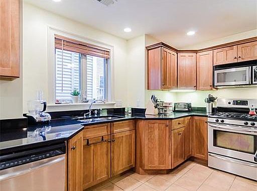 Fantastic newer construction townhouse style home built in 2001. 3 bedrooms, 2-/2 baths, almost 1700 sqft, 2 car parking. Large open granite and stainless kitchen, gas fireplace in living room, deck off dining room, beautiful hardwood floors, in-unit laundry. Master suite with large closet, and master bath and second full bath both with double sinks. 2 deeded off street parking. Efficient heating and central air, pets friendly association. 2 min walk from Commuter Rail and 5 min walk from West Roxbury shopping on Centre Street. Short distance to Roslindale Village, minutes from Roche Brothers. Perfect for commuters, this location is just blocks from West Roxbury Pkwy. This house is beautiful, spacious and has the size and feel of a single family. Incredible opportunity!
